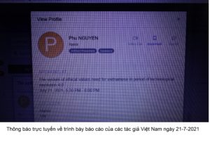 Từ  ngày 19-7-2021, các báo cáo khoa học tại các ban chuyên môn của ICP 2020+ đã được thực hiện liên tục từ 5h sáng đến 23h59 phút đêm. Ban tổ chức Đại hội đã nhận được 9830 báo cáo từ các nhà khoa học của các nước gửi đến. Đã có 8086 báo cáo các loại được Ban tổ chức đại hội phê duyệt đưa vào trình bày tại các ban, tiểu ban, các loại hình báo cáo khoa học tại đại hội. Số người theo dõi và tham gia trực tuyến tai đại hội là 3844 người. Các đại biểu châu Âu chiếm số lượng đông nhất là 2428 người; chấu Á: 787; Bắc Mỹ: 460; Mỹ la tinh: 65; châu Phi: 64; Châu Đại dương: 40 người.