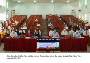 Được sự đồng ý của Thường trực Tỉnh ủy, UBND tỉnh Bà Rịa – Vũng Tàu, ngày 28/12/2021, Hội Khoa học Tâm lý – Giáo dục tỉnh phối hợp với Sở Giáo dục và Đào tạo và Trường Cao đẳng Sư phạm tỉnh đã tổ chức Hội thảo khoa học với chủ đề “Giải pháp nâng cao chất lượng giáo dục, đào tạo gắn với hoạt động hướng nghiệp, phân luồng học sinh phổ thông tỉnh Bà Rịa – Vũng Tàu trong bối cảnh chuyển đổi số”. Theo đúng tinh thần chuyển đổi số và thích ứng an toàn với dịch bệnh COVID -19,  hội thảo kết hợp 2 hình thức trực tiếp và trực tuyến.