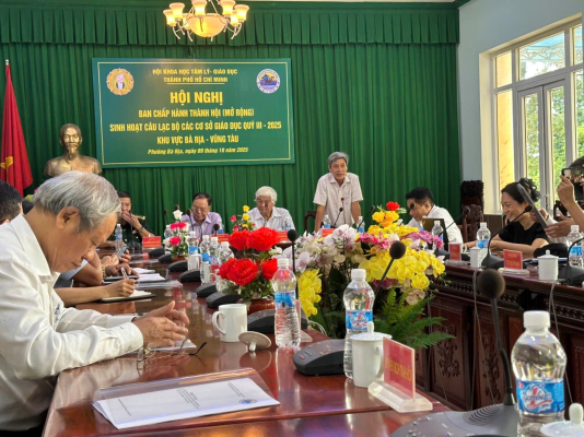 Thực hiện Quyết định 1443/QĐ-UBND ngày 12/9/2025 của UBND TP.HCM cho phép hợp nhất 63 hội, trong đó có Hội KH TLGD; công văn số 5046/SNV-TCBC&TCPCP ngày 19/9/2025 của Sở nội vụ hướng dẫn đại hội các hội thực hiện trước 12/12/2025; Hội KH TLGD TP HCM (mới) đã có Đề án hợp nhất với BCH lâm thời gồm 51 vị, trong đó có 20 uỷ viên thường vụ; thường trực Hội gồm 8 vị. Ban Chấp hành Hội (khu vực Bà Rịa- Vũng Tàu) đã bầu và nhất trí theo Đề án hợp nhất. Đồng thời đề nghị Ban Chấp hành Thành hội sớm chuẩn bị các hồ sơ, điều kiện để tiến hành đại hội nhiệm kỳ 2025-2030 theo quy định.