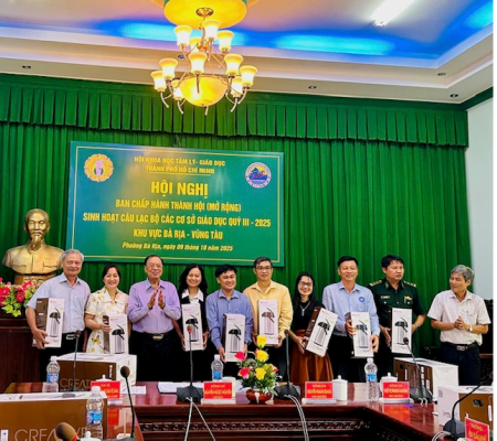 Ngày 9/10/2025 tại trường Cao đẳng Biên phòng, Phường Bà Rịa; Hội Khoa học Tâm lý và Giáo dục TP. Hồ Chí Minh (khu vực Bà Rịa – Vũng Tàu) đã tổ chức Hội nghị Ban chấp hành (mở rộng) và sinh hoạt Câu lạc bộ cơ sở giáo dục quý III/2025. Dự họp có các Uỷ viên Ban Chấp hành, thành viên Câu lạc bộ Các cơ sở giáo dục, các Chi hội trưởng các chi hội Khoa học Tâm lý- Giáo dục trực thuộc Hội BR-VT (cũ).