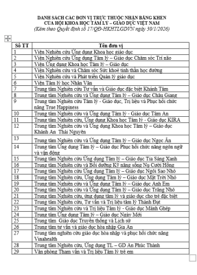 Ngày 30/01/2026 tại Nhà khách Tổng liên đoàn Lao động Việt Nam, 95 Trần Quốc Toản, Hoàn Kiếm, Hà Nội, Hội Khoa học Tâm lý-Giáo dục Việt Nam (Hội KHTL-GDVN) đã long trọng tổ chức Hội nghị Tổng kết hoạt động các đơn vị trực thuộc Hội năm 2025.