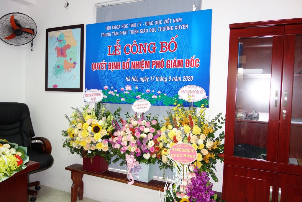 Ngày 17-9-2020, Trung tâm Phát triển Giáo dục thường xuyên thuộc Hội Khoa học Tâm lý- Giáo dục Việt Nam đã tổ chức lễ công bố quyết định bổ nhiệm Phó Giám đốc mới của Trung tâm. Đến dự lễ có PGS.TS. Trần Kiều, Chủ tịch Hội, GS.TS. Nguyễn Ngọc Phú, Phó Chủ tịch kiêm Tổng Thư ký Hội, Bà Nguyễn Thị Hoàng Yến, Chánh Văn phòng Hội cùng một số cán bộ chuyên viên của Văn phòng, cán bộ và nhân viên của Trung tâm phát triển giáo dục thường xuyên.