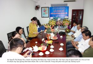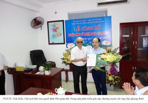 Tại buổi lễ, Bà Nguyễn Thị Hoàng Yến, Chánh Văn phòng Hội Khoa học Tâm lý-Giáo dục Việt Nam đã công bố quyết định của Chủ tịch Hội bổ nhiệm ông Ngô Quang Binh, cán bộ của Trung tâm, được đảm nhiệm chức vụ mới là Phó giám đốc Trung tâm phát triển giáo dục thường xuyên. Ông Trần Kiều, Chủ tịch Hội đã trực tiếp trao quyết định bổ nhiệm chức vụ mới cho ông Ngô Quang Binh, phát biểu nhiệt liệt biểu dương các thành tích đã đạt được của Trung tâm trong những năm qua và mong muốn Trung tâm sẽ có nhiều cống hiến mới đóng góp vào thắng lợi chung của toàn Hội.