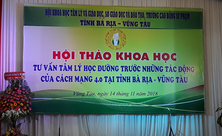 Ngày 14/11/2018 tại thành phố Vũng Tàu tỉnh BR-VT Hội khoa học Tâm lý Giáo dục kết hợp với Sở giáo dục & Đào tạo và Trường Cao đẳng Sư phạm đã tổ chức Hội thảo: “Tư vấn tâm lí học đường trước những tác động của cuộc cách mạng 4.0 tại tỉnh BR-VT”. Hội thảo đã qui tụ được hơn 150 đại biểu là các nhà khoa học, nhà quản lý, giảng viên, các trưởng phó phòng Sở GD –ĐT, các tác giả có tham luận trong và ngoài tỉnh.
