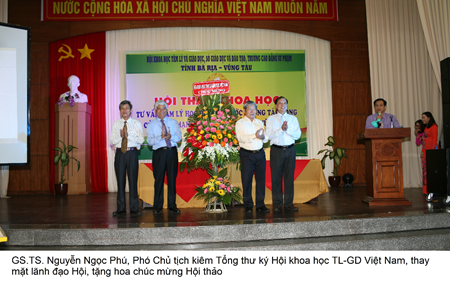 Đến dự Hội thảo , về phía Trung ương Hội có GS.TS Nguyễn Ngọc Phú, Phó chủ tịch kiêm Tổng thư ký Hội KHTL-GD Việt Nam. N.G.Ư.T  TS. Phạm Văn Khanh, phó chủ tịch Hội KHTL-GD Việt Nam. Đại biểu địa phương có đồng chí Trần Văn Tuấn Phó Chủ tịch HĐND tỉnh, các đồng chí lãnh đạo các Ban ngành của tỉnh và thành phố, các phóng viên Báo BR-VT.