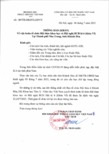 Từ những lý do trên, sau khi thống nhất với Ban tổ chức Hội thảo ở Khánh Hòa, Hội Khoa học Tâm lý – Giáo dục Việt Nam quyết định hoãn tổ chức Hội thảo khoa học và Hội nghị BCH Hội kì 6 (Khóa VI) đã được ấn định vào ngày 23,24/7/2021. Thời gian tổ chức trở lại xin được thông báo sau.